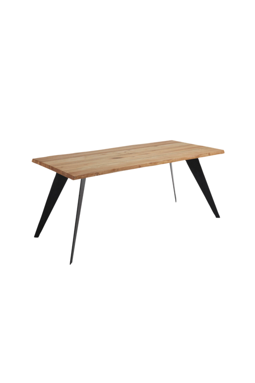 Bord med bordsskiva av ek. Ben av epoximålat stål.