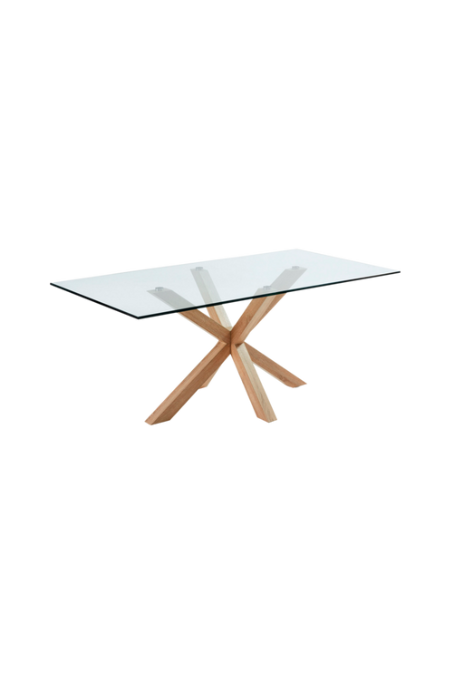 Matbord med ben av stål med träliknande ytfinish. Bordsskiva av härdat glas. Bredd: 200 cm. Djup: 100 cm. Höjd: 75 cm.