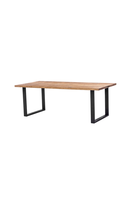 Matbord 160×100 cm oljad vildek med underrede U-ben i svart metall. Längd 160 cm. Bredd 100 cm. Höjd 75 cm. Vikt 65 kg.
