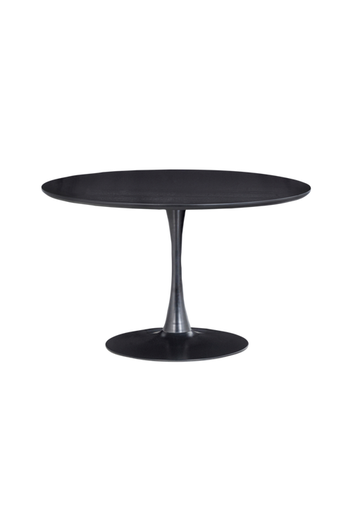 – Stilfullt matbord i rund form – Bordsskiva av MDF – Med plats för 4-6 personer – H 75 cm x Ø 120 cm Sammy matbord utnyttjar utrymmet som finns optimalt, trumpetfoten av metall ger generöst benutrymme. Sammy ingår i en exklusiv kollektion från det nederländska inredningsmärket WOOOD och har en djupsvart finish. Ett runt matbord är en perfekt plats för trevliga middagar och livliga bjudningar framåt kvällstimmarna. Vem bjuder du in? Material MDF bildas av pressade träfibrer som binds samman med harts under högt tryck. Detta ger MDF en mycket slät yta. Våra kollektioner innehåller MDF som alltid är behandlad med en stark primer och målad i en färg. Detta säkerställer att produkten är väl skyddad och redo att användas. Mått – Höjd: 75 cm – Diameter: 120 cm – Bordsskivans tjocklek: 3 cm – Benets höjd: 72 cm – Benets diameter: Ø66 cm nedtill / Ø5 cm upptill Skötsel Fördelen med MDF är att materialet inte bildar flisor eller blir skevt. Obehandlad MDF är dock mycket känslig för fukt och värme på grund av att materialet är mycket absorberande. Det leder till att MDF expanderar och sedan inte återfår sitt ursprungliga skick. Behandlad MDF är mycket lämplig för möbler som används mycket, som bord och skåp. Leverans Produkten levereras i två paket. Sammy är lätt att montera med hjälp av medföljande monteringsanvisning. För att skydda hårda golv, sätt möbeltassar av filt under benet.