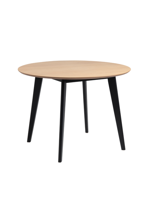 Bord av ekfanerat gummiträ. Mått; Diameter 105 cm, höjd 75 cm. Montera själv.