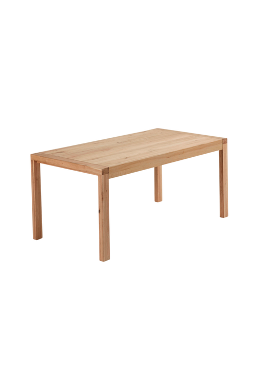 Matbord av massiv ek med en extensionskiva. 90×180 cm + 50 cm. Höjd 77 cm. Montera själv.