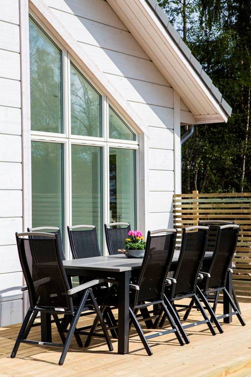 Alf matbord med en topp i aintwood och bordsben i aluminium. Bordets mått: Längd förlängningsbar mellan: 224cm och 324cm, Bredd: 100cm, Höjd: 75cm. Matchas med 6st 5:pos Alf matstolar i aluminium. Stolens mått: Totalhöjd: 108cm, Bredd: 59cm, Djup: 73cm, Sitthöjd: 44,5cm. Bord och stol kräver enklare montering.