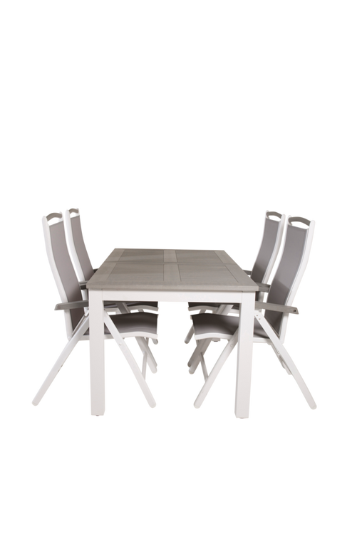 Athena matbord med en topp i aintwood och bordsben i aluminium. Bordets mått: Längd förlängningsbar mellan: 152cm och 210cm, Bredd: 90cm, Höjd: 75cm. Matchas med 4st Athena 5:pos matstolar i textilene med detaljer i aintwood och stolsben i aluminium. Stolens mått: Totalhöjd: 109cm, Bredd: 61cm, Djup: 73cm, Sitthöjd: 44cm. Bord och stol kräver enklare montering.