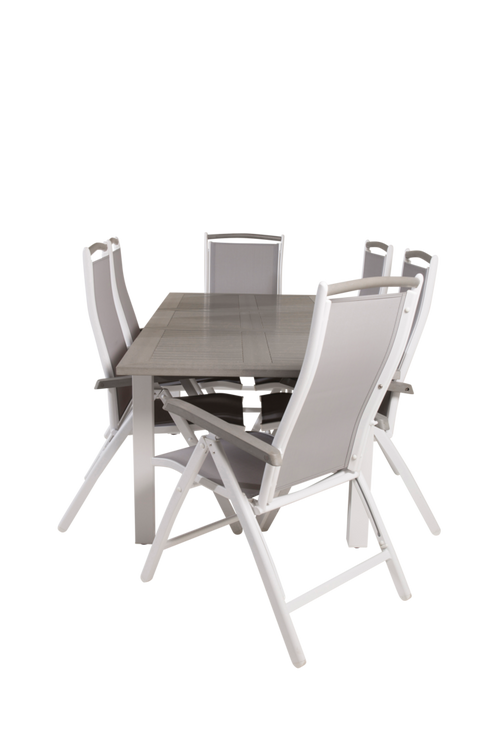 Athena matbord med en topp i aintwood och bordsben i aluminium. Bordets mått: Längd förlängningsbar mellan: 152cm och 210cm, Bredd: 90cm, Höjd: 75cm. Matchas med 6st Athena 5:pos matstolar i textilene med detaljer i aintwood och stolsben i aluminium. Stolens mått: Totalhöjd: 109cm, Bredd: 61cm, Djup: 73cm, Sitthöjd: 44cm. Bord och stol kräver enklare montering.
