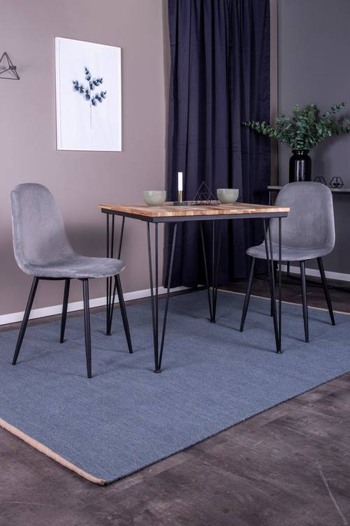 Bangkok matbord med en topp i teak och bordsben i metall. Bordets mått: Längd: 80cm, Bredd: 80cm, Höjd: 75cm. Matchas med 2st Penally matstolar i sammet och stolsben i metall. Stolens mått: Totalhöjd: 88cm, Bredd: 42,5cm, Djup: 53,3cm, Sitthöjd: 41,5cm. Bord och stol kräver enklare montering.
