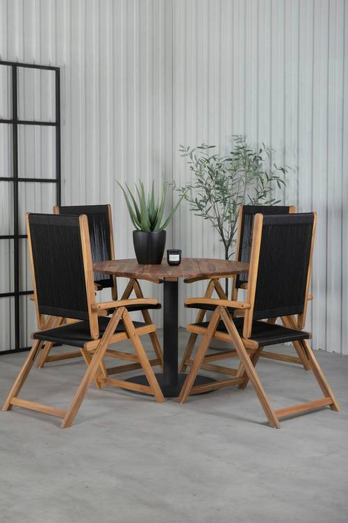 Charlie matbord med en bordskiva i akacia och bordsben i akacia. Matchas med 4 st Liv Matstolar med en stolsits i 100% polyester och stolsben i trä. Bord och stol kräver enklare montering. Bordets mått: Diameter: 100 cm. Höjd: 74 cm. Stolens mått: Sittbredd: 47.4 cm. Sitthöjd: 45 cm. Sittdjup: 52.5 cm.