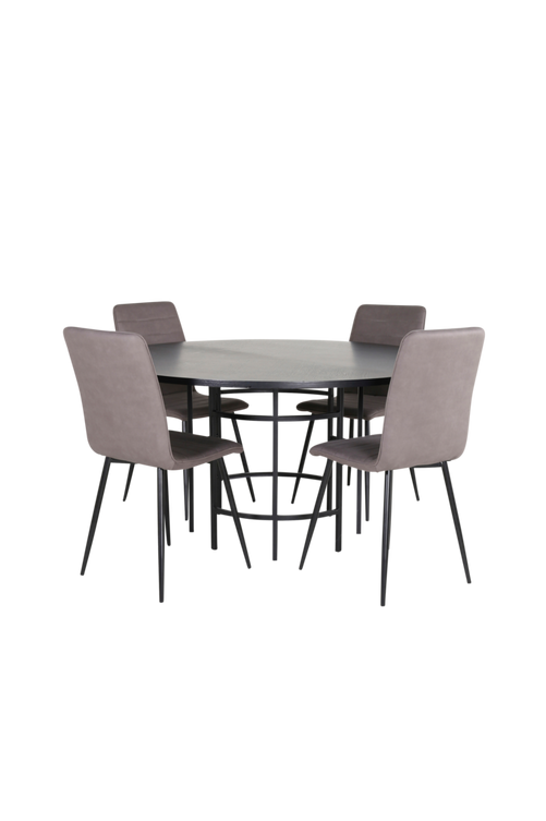 Copenhagen matbord med en rund bordstopp i MDF med faner och bordsben i metall. Matchas med 4 st Windu Lyx matstolar med stolsits i mikrofiber och stolsben i järn. Bord och stol kräver enklare montering. Bordets mått: Diameter: 140 cm, höjd: 74 cm. Stolens mått: Sittdjup: 37 cm, sittbredd: 41 cm, sitthöjd: 47 cm.