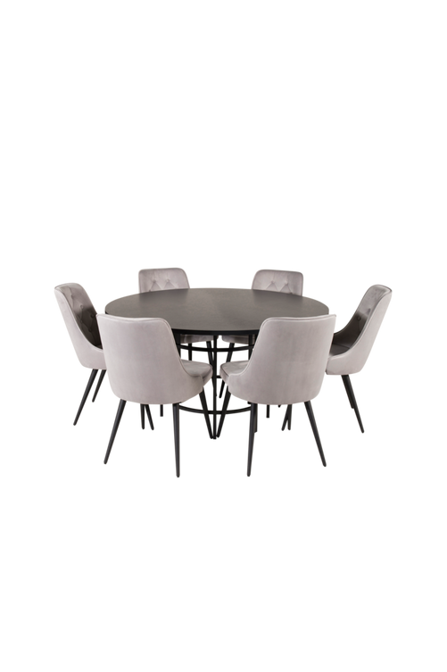 Copenhagen Furniture Fashion matbord med en rund topp i MDF samt fanér och bordsben i metall. Bordets mått: Diameter: 140cm, Höjd: 74cm. Matchas med 6st Venture Design Valleta deluxe matstolar i sammet och stolsben i metall. Stolens mått: Totalhöjd: 90cm, Bredd: 51cm, Djup: 63cm, Sitthöjd: 49cm. Bord och stol kräver enklare montering.