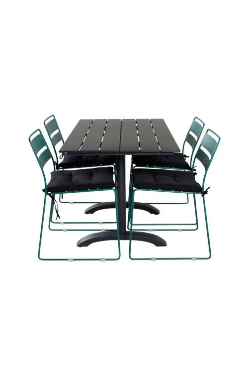 Dennis matbord med en toppskiva i aintwood och bordsben i aluminium. Bordets mått: Höjd: 74 cm, Bredd: 70 cm, Längd: 120 cm. Matchas med 4 st Lincoln matstolar i stål. Stolens mått: Totalhöjd: 78 cm, Bredd: 47 cm, Djup: 54.5 cm. Sitthöjd: 47 cm. Sittbredd: 39 cm. Sittdjup: 42.5 cm. Bord och stol kräver enklare montering.