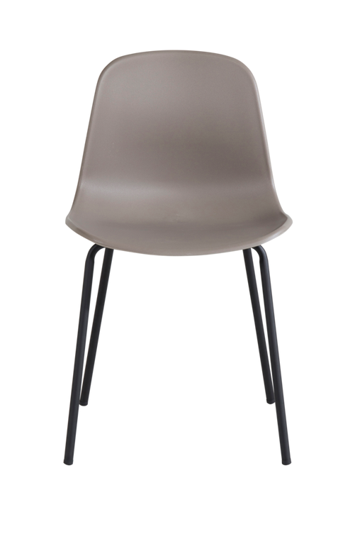 Almvik matstol med stolsits i plast och stolsben i metall. Stolen kräver enklare montering.