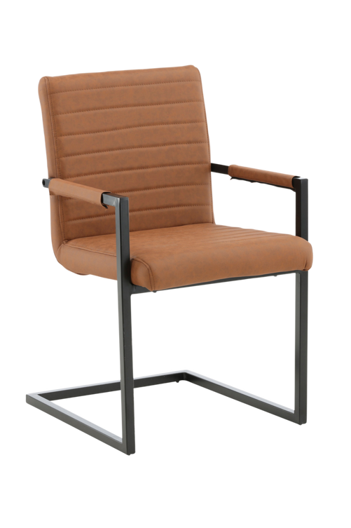Matstol i serien art erbjuder dig en fåtölj/karmstol i en industriell helklädd design, med ett rustikt underrede och integrerade armstöd i pulverlackerad metall. Bred rygg och sits för extra komfort i konstläder med dekorsömmar på insidan av rygg och sits i ett snyggt mönster. Lättare montering krävs. skötselråd: vid svåra fläckar kan en fuktad bomullstrasa och ett medel avsett för rengöring av bycast & pu användas, prova först på ett icke synligt område då vissa medel kan ha olika sammansättningar.