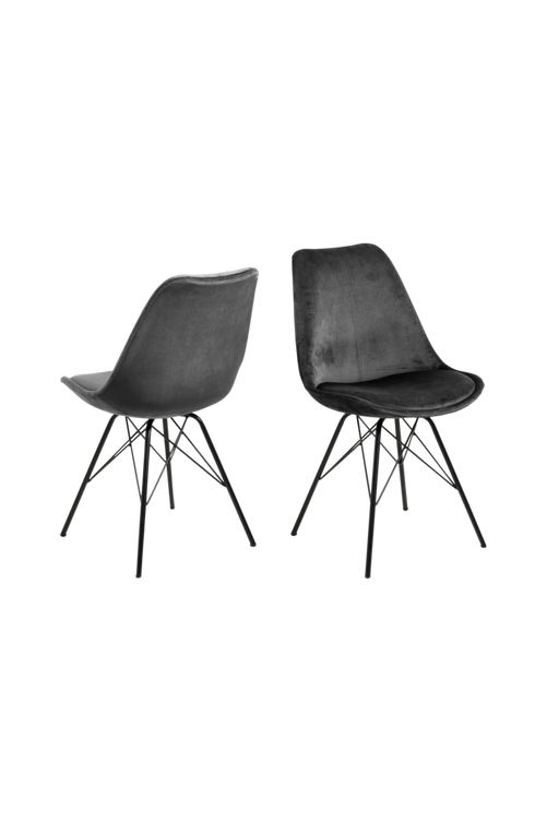 Stol med metallstomme och formgjuten plastsits med sammetstyg av polyester. Höjd 85,5, djup 54, bredd 48,5 cm. Sitthöjd 49, sitt djup 42 cm. över 25 000 Martin Dale. Montera själv.
