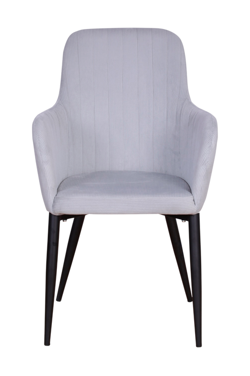 Bekväm och stilren stol i manchestertyg med svarta ben i metall. 2-pack. Bredd: 57CM Höjd: 92CM Djup: 62CM Sitthöjd: 48CM Kräver enklare montering.