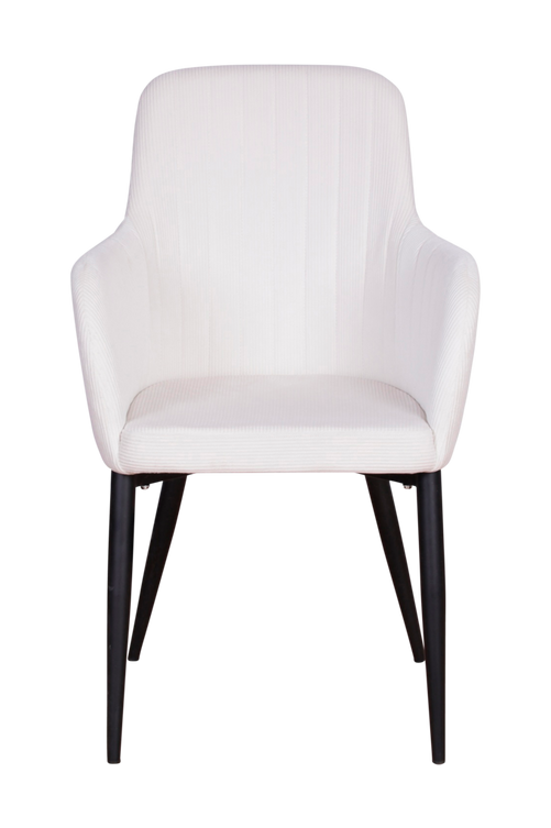 Bekväm och stilren stol i manchestertyg med svarta ben i metall. 2-pack. Bredd: 57CM Höjd: 92CM Djup: 62CM Sitthöjd: 48CM Kräver enklare montering.