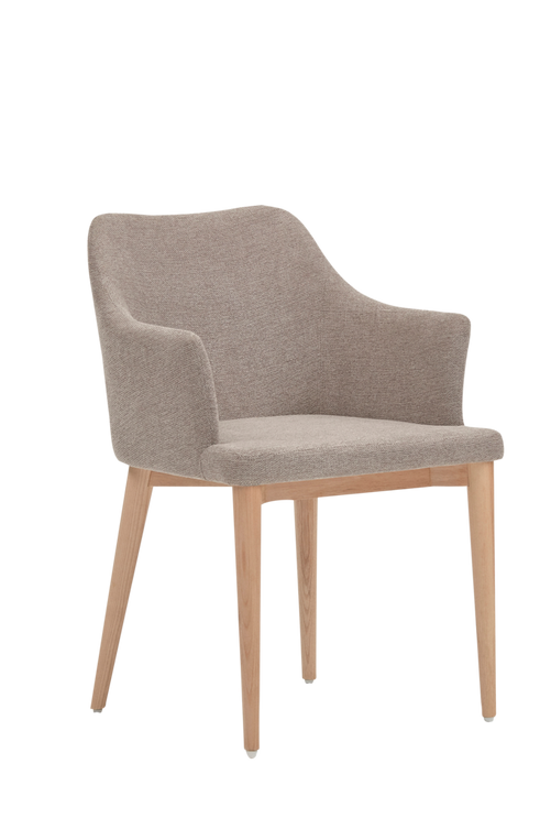 En stol som är lika bekväm som en fåtölj? Det är möjligt. Stolen Croft med armstöd, vadderad sits och böjt ryggstöd omsluter dig med maximal komfort. Perfekt för långa konversationer efter middagen. Chenille tyg och massiv ask i benen.
