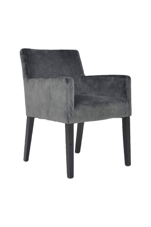 Matstol med armstöd i sammet (100 % polyester) och lackade träben.