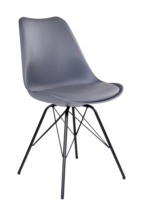 Stol med resistent gjutet plastskal och PU-sits (set med 2 st). Mått: Längd: 48 cm. Bredd: 55 cm Höjd: 86 cm. Material: PU-läder, beständig gjuten plast och metall. Ej monterad.