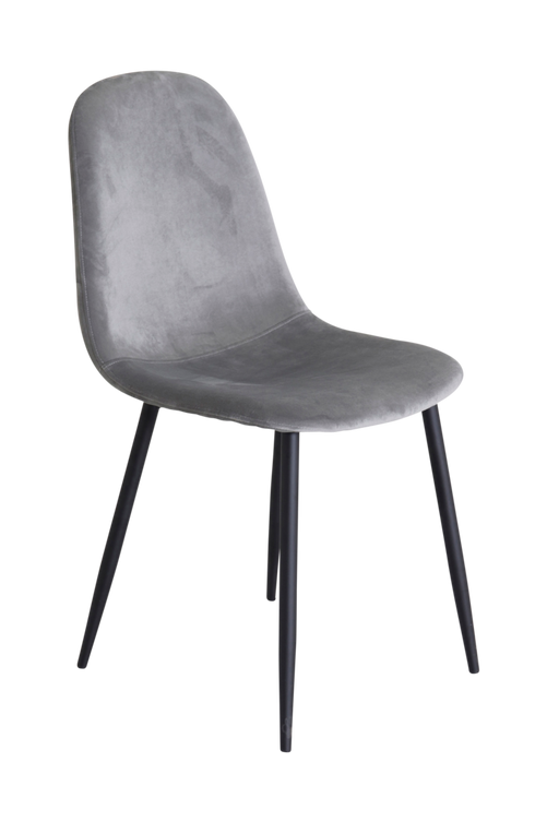 Penally matstol i sammet och stolsben i metall. Stolen kräver enklare montering.