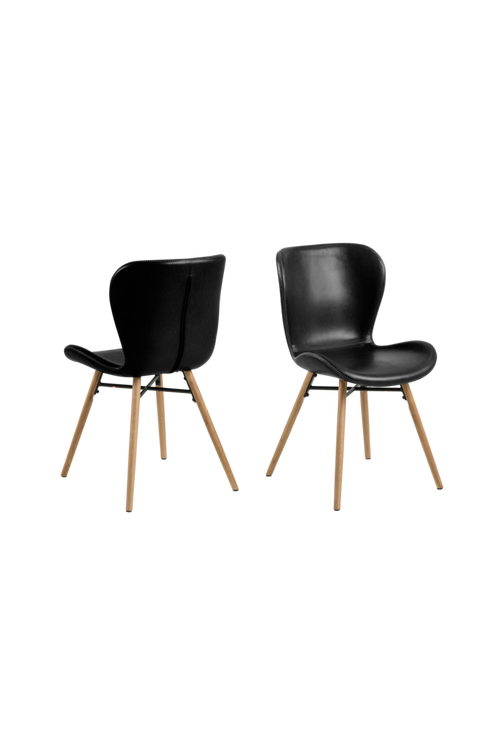 Matstol Rita 2 säljs i 2-pack. Ben av gummiträ och lackade metalldetaljer. Sits klädd i PU, konstläder. Mått Höjd 82,5 cm, bredd 47 cm, djup 56 cm. Sitthöjd 46,5 cm. Levereras omonterad.