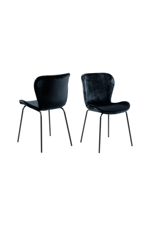 Matstol Rita säljs i 2-pack. Ben av gummiträ och lackade metalldetaljer. Sits klädd i 100% sammetspolyester. Mått Höjd 82,5 cm, bredd 47 cm, djup 56 cm. Sitthöjd 46,5 cm. Levereras omonterad.