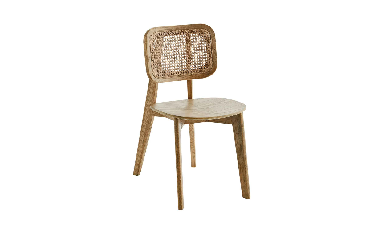 Matstol är en vacker stol i unik design från Madam Stoltz som sätter stark personlighet på hemmet. Dess design är trendig med lutande ben och ryggstöd i rotting. Passar perfekt som matstol eller extra sittplats i hallen eller sovrummet. Notera att stolen är tillverkad i naturmaterial vilket betyder att färg och form kan variera i utseende.Design & egenskaperElegant matstol i en design som inte går ur tiden.Tillverkad i rotting och almträ.Stolen har sitthöjden 44 cm. Leverans & förpackningLevereras monterad.Vikt: 4,7 kg