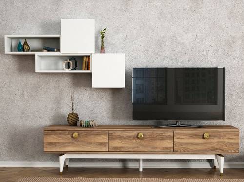 Material: 100% Melaminbelagd spånskiva TV Bänk: Mått: 180 x 23,1 x 29,5 cm Hylla Mått: 115 x 65 x 20 cm