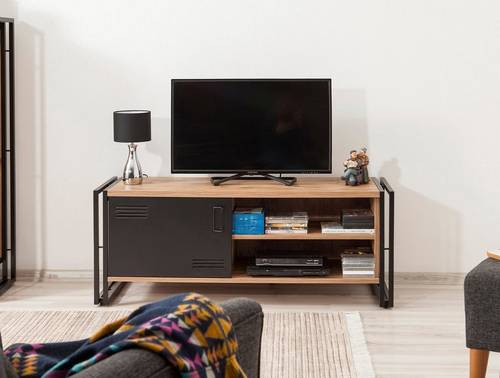 Material: 100% Melaminbelagd spånskiva Metallram (Tjocklek: 2 cm) Metallplaterade Dörr Metallhandtag Mått: 130 x 50 x 45 cm