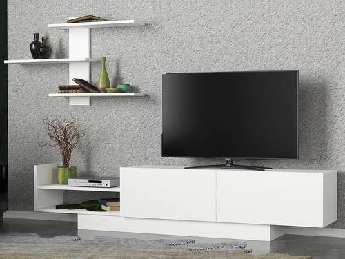 Material: 100% Melaminbelagd spånskiva TV Bänk: Mått: 180 x 31,8 x 40 cm Hylla Mått: 95,5 x 16 x 60 cm