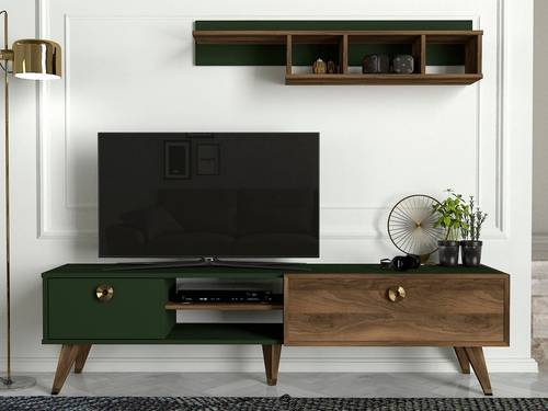 Material: 100% Melaminbelagd spånskiva TV Bänk: Mått: 180 x 48 x 33 cm Hylla Mått: 120 x 28,4 x 19,5 cm