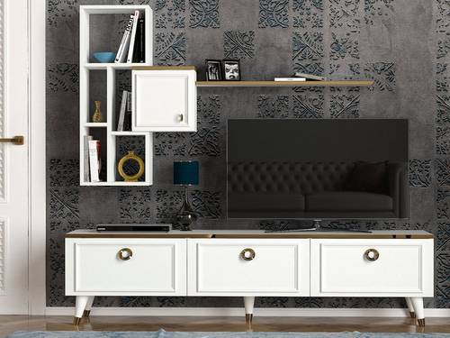 Material: 100% Melaminbelagd spånskiva TV Bänk: Mått: 180 x 46,5 x 35 cm Hylla Mått: 137 x 94 x 20 cm