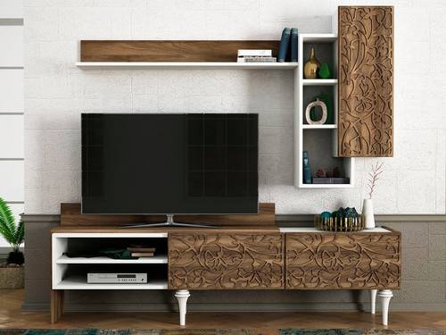 Material: 100% Melaminbelagd spånskiva TV Bänk: Mått: 182 x 61,4 x 31,3 cm Hylla Mått: 170 x 80 x 20 cm