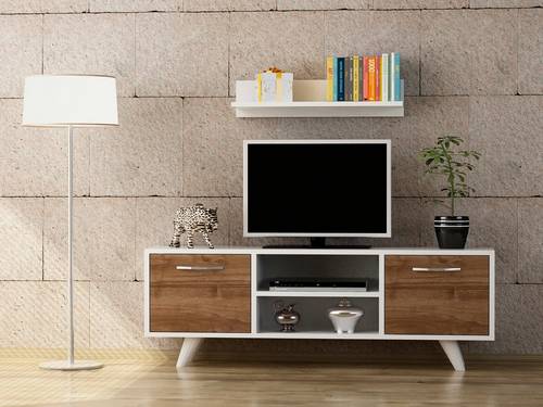 Material: 100% Melaminbelagd spånskiva TV Bänk: Mått: 120 x 41 x 25 cm Hylla Mått: 60 x 14,5 x 14,5 cm