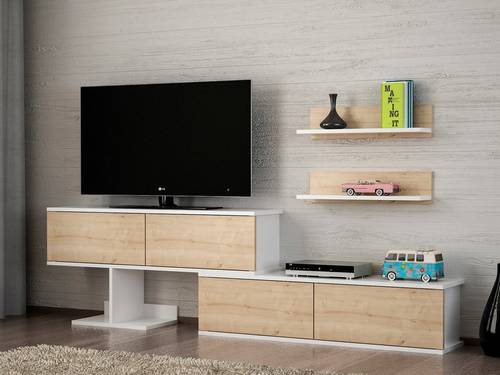 Material: 100% Melaminbelagd spånskiva TV Bänk: Mått: 210 x 29,5 x 59 cm Hylla Mått: 60 x 14,5 x 14,5 cm
