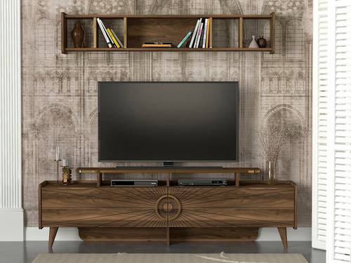 Material: 100% Melaminbelagd spånskiva TV Bänk: Mått: 184 x 55 x 34 cm Hylla Mått: 154 x 30 x 22 cm
