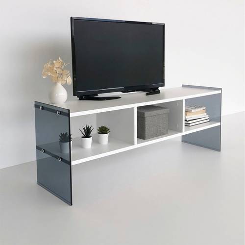 Material: 100% Melaminbelagd spånskiva Ram: Material: 100% Tempererat Glas Mått: 32 x 122 x 45 cm