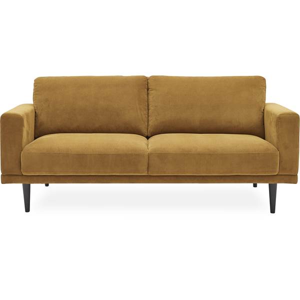 3 sits Soffa, polyeterskum, polyeterskum, siddehøjde 49 cm. – Wave 230 ockrafärgad textil och ben av svartmålat gummiträ