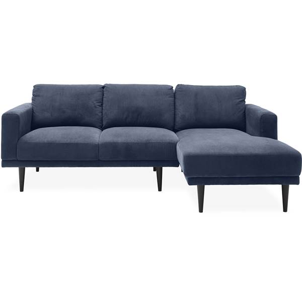 2 sits högervänd Soffa med schäslong, . – Wave 220 Royal blue textil och ben av svartmålat gummiträ
