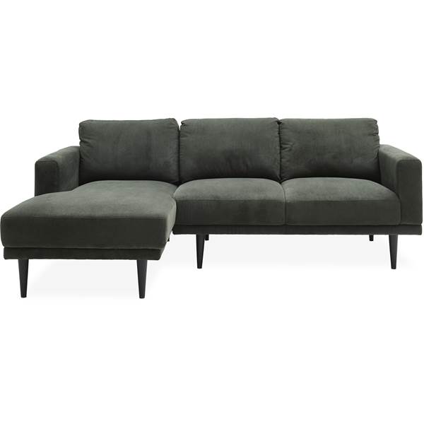 2 sits vänstervänd Soffa med schäslong, . – Wave 190 Dark green textil och ben av svartmålat gummiträ
