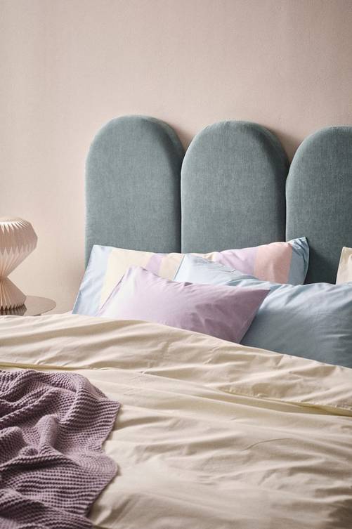 Sänggavel i mjuk och lekfull form med vaddering som gör den bekväm att sitta och luta sig mot. Sänggaveln är klädd med skönt chenilletyg som är tåligt och har en slitstyrka på 33000 Martindale. Stommen är av FSC-märkt furu och plywood som kompletterats med mjuk skumfyllning. Sänggaveln monteras mot väggen bakom din resårmadrass. Överdraget är ej avtagbart. Väggfäste medföljer. Produkten är certifierad med FSC vilket innebär att den består av trä som är avverkat från ett ansvarsfullt skogsbruk som tar hänsyn till människor och miljö. Material: Klädsel: 100% polyester. Fyllning: Polyuretanskum. Stomme: Furu och plywood. Storlek: Bredd 185 cm, höjd 124 cm, djup 10 cm. Skötselråd: Dammsugning. Fläckar tas bort med lätt fuktad trasa. Tips/råd: Med en matchande sängkappa får du känslan av en helt ny säng.