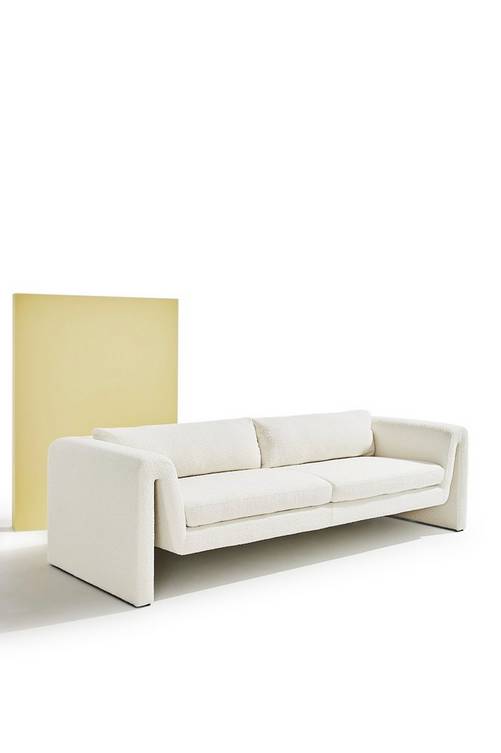 Sofistikerad, speciell i sin framtoning och böljande design. Mika är en lyxig soffa klädd med mjuk bouclé. Garnet som tyget vävs av har små öglor och knutor som skapar ett mjukt tyg med lite lockig yta. Soffan är rymlig och tre personer sitter bekvämt. Möblerna i serien är rymliga och bekväma, snygga att matcha med varandra. Soffan har stomme av FSC-certifierad furu och plywood som kombinerats med resårband, kallskumm, zigzag-fjädrar och polyestervadd för hög sittkomfort. Klädseln är ej avtagbar. Fläckar tas bort med en ljus, fuktig trasa. Produkten innehåller trä som är avverkat från ett ansvarsfullt, kontrollerat och mer hållbart skogsbruk som tar hänsyn till människor och miljö. – stomme: furu, plywood, zigzagfjädrar, resårband, kallskum, polyestervadd – klädsel: bouclé av 95% polyester, 5% akryl – längd 240 cm, djup 88 cm, höjd 73 cm, sitthöjd 45 cm, sittdjup 55 cm, armstöd höjd 65 cm