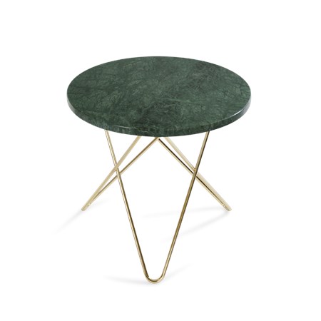 Mini O Sidobord Grön Marmor med Mässingram Ø40