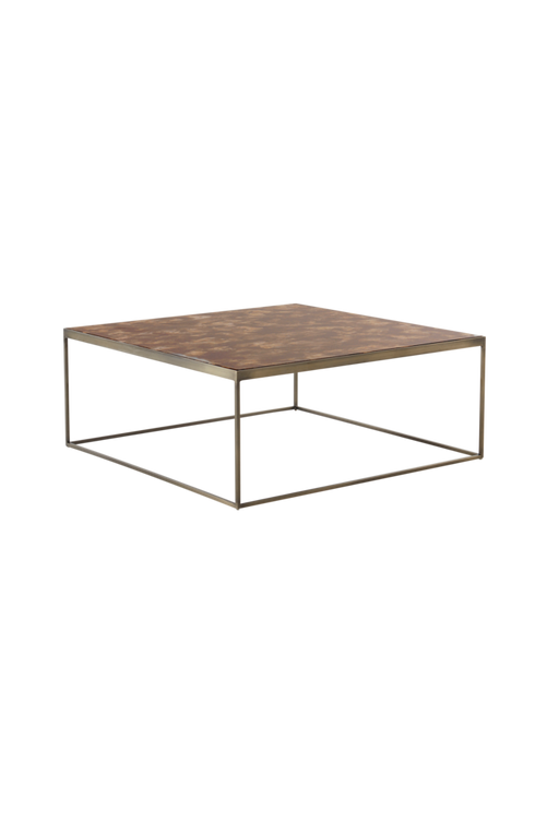Kvadratiskt soffbord med stomme av metall och keramisk bordsskiva. Bordsskivan vilar på en MDF-skiva och påminner om marmor i bruna nyanser. Material: Metall, keramiskt material och MDF. Storlek: Höjd 33 cm, bordsskiva 81×81 cm. Skötselråd: Torkas av med lätt fuktad trasa.