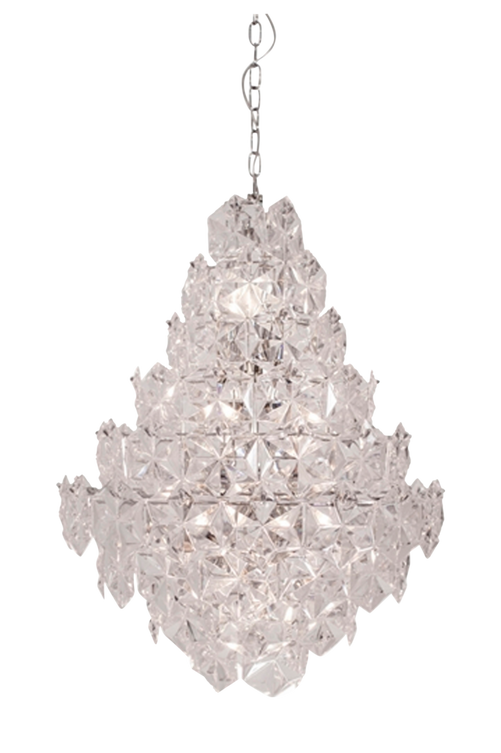 Monarque Grande är en helt fantastisk taklampa i klar akryl med kromade detaljer. En maffig taklampa som skapar avtryck där den placeras. Lampans höjd 75 cm, Ø 58 cm. Sladdlängd 120 cm. Sockel 11 x E14. Max 40 W. Ljuskälla ingår ej. Olika typer av ljuskällor kan ha stor påverkan på stil och utseende hos lampan. Prova dig fram till ditt eget uttryck!Takkontakt ingår ej på grund av nytt EU direktiv. De finns att beställa separat.