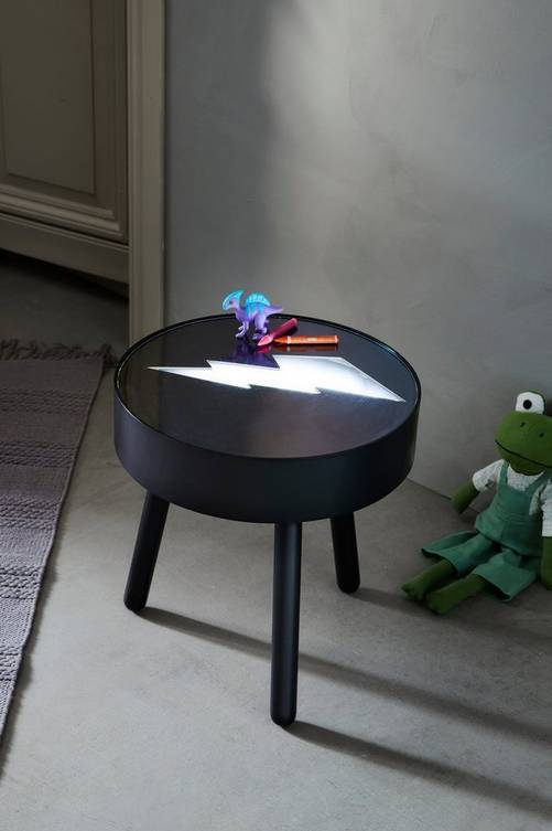 Golvlampa utformad som ett litet bord av trä med laserskuren världskarta under bordsskivan som är av akrylglas. Belysningen är batteridriven och dold i bordsskivan och belyser den utskurna kartan på ett effetkfullt sätt. Belysningen sätts på och av under bordskivan med en liten switch. Material: Trä och akrylglas. Storlek: Höjd 42 cm, ø 40 cm, bordskivans höjd 9 cm. Sockel/lampa: Integrerad LED-belysning 2,7 W. Drivs av 3 st AAA-batterier, medföljer ej.