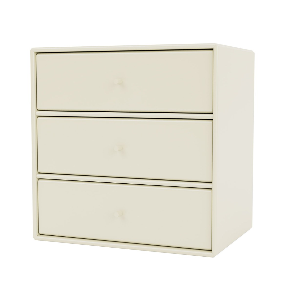 Hyllsystem Mini Med 3 LådorMed det praktiska och mångsidiga hyllsystemet från Montana kan du på ett enkelt sätt skapa din egen kombination av hyllor. Montana Mini-serien kan användas som en ensam hylla eller i kombination med flera. Bara fantasin sätter gränser!Mini har fyra förborrade hål och monteras smidigt på en skena. Ibland kan behoven ändras och då är det enkelt att ta ner modulerna och byta plats på dom efter tycke och smak! Denna modul är i färgen Vanilla.Möbelföretaget Montana startades redan 1982 av designer Peter J lassen. Det danska företaget har sedan dess skapat och producerat produkterna i sin egen fabrik i Danmark. Hyllorna har oändliga möjligheter och kombinationer mellan storlek och färg som öppnar upp för att varje hem kan ha en helt unik kombination. De unika färgerna på Mini-serien är framtagna i samarbete med färgexperten Margrethe Odgaard. Färgerna, likt material, är miljövänliga och har därför märkts med EU Ecolabel.MåttHöjd 35 cmBredd 35 cm Djup 25 cm