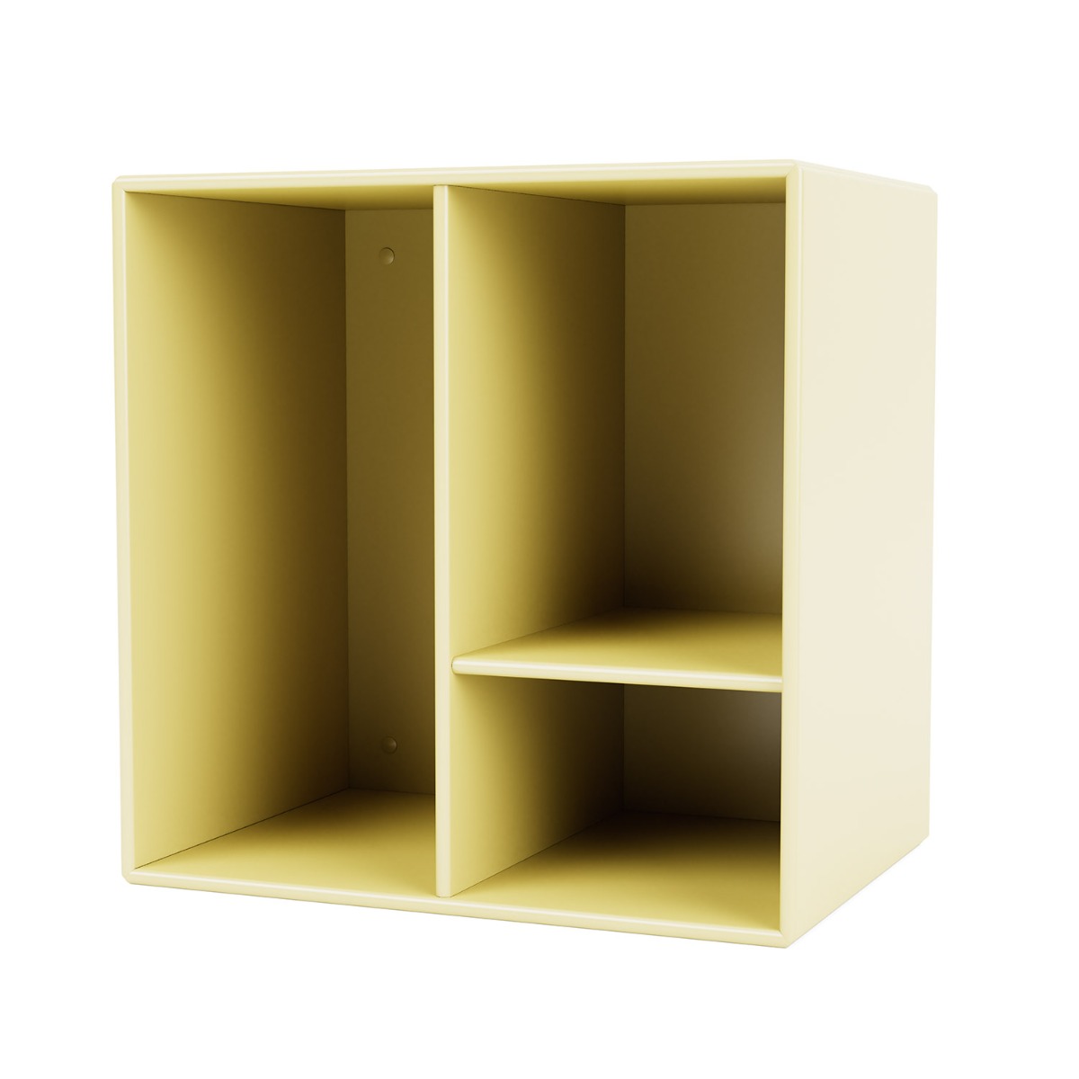 Modul Mini kub med hyllorMed det praktiska och mångsidiga hyllsystemet från Montana kan du på ett enkelt sätt skapa din egen kombination av hyllor. Montana Mini-serien kan användas som en ensam hylla eller i kombination med flera. Bara fantasin sätter gränser!Mini med hylla har fyra förborrade hål vilket ger dig möjligheten att montera hyllan åt det håll du vill. Ibland kan behoven ändras och då är det enkelt att ta ner hyllan och vrida den ett varv innan man monterar upp den på väggen igen. Denna modul är i färgen Camomile. Möbelföretaget Montana startades redan 1982 av designer Peter J lassen. Det danska företaget har sedan dess skapat och producerat produkterna i sin egen fabrik i Danmark. Hyllorna har oändliga möjligheter och kombinationer mellan storlek och färg som öppnar upp för att varje hem kan ha en helt unik kombination. De unika färgerna på Mini-serien är framtagna i samarbete med färgexperten Margrethe Odgaard. Färgerna, likt material, är miljövänliga och har därför märkts med EU Ecolabel.MåttHöjd 35 cmBredd 35 cm Djup 25 cm