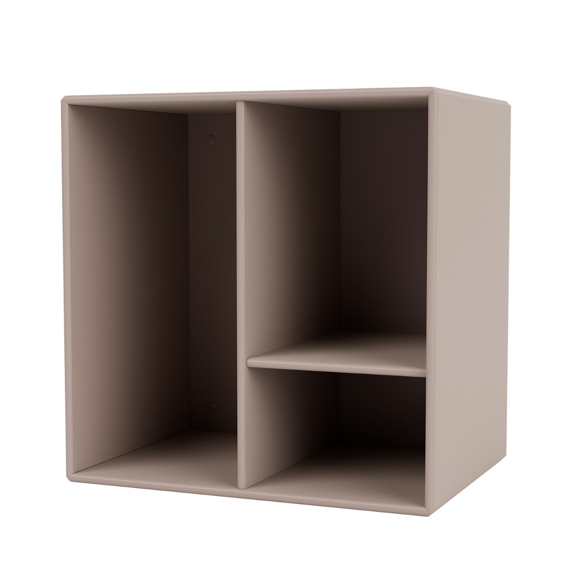 Modul Mini kub med hyllorMed det praktiska och mångsidiga hyllsystemet från Montana kan du på ett enkelt sätt skapa din egen kombination av hyllor. Montana Mini-serien kan användas som en ensam hylla eller i kombination med flera. Bara fantasin sätter gränser!Mini med hylla har fyra förborrade hål vilket ger dig möjligheten att montera hyllan åt det håll du vill. Ibland kan behoven ändras och då är det enkelt att ta ner hyllan och vrida den ett varv innan man monterar upp den på väggen igen. Denna modul är i färgen MushroomMöbelföretaget Montana startades redan 1982 av designer Peter J lassen. Det danska företaget har sedan dess skapat och producerat produkterna i sin egen fabrik i Danmark. Hyllorna har oändliga möjligheter och kombinationer mellan storlek och färg som öppnar upp för att varje hem kan ha en helt unik kombination. De unika färgerna på Mini-serien är framtagna i samarbete med färgexperten Margrethe Odgaard. Färgerna, likt material, är miljövänliga och har därför märkts med EU Ecolabel.MåttHöjd 35 cmBredd 35 cm Djup 25 cm