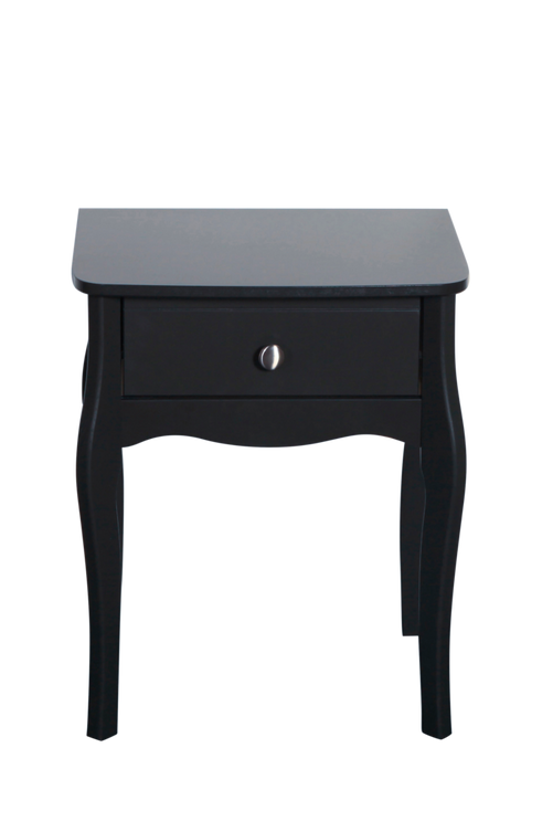 Nattbord med formade ben tillverkade i en kombination av MDF och massiv tall med en fin lackerad yta. Enkel självmontering.