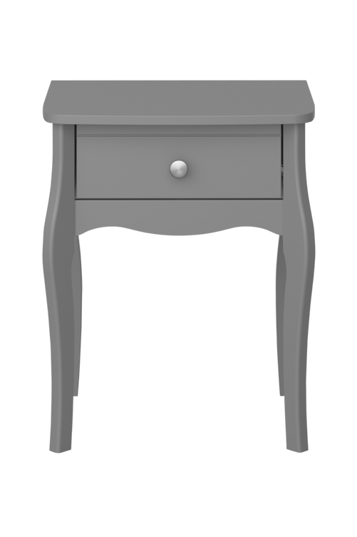 Nattbord med formade ben tillverkade i en kombination av MDF och massiv tall med en fin lackerad yta. Enkel självmontering.